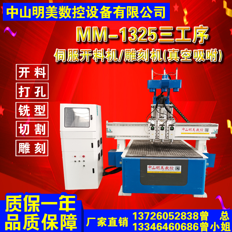 創(chuàng)新的設計及高精度的制造,使機床的性能比以前提高50%,高強度的鋼性結(jié)構(gòu)。 2、三軸原裝進口導軌,絲杠,伺服電機,速度快效率高,是普通機器的3-5倍。 3、高速度變頻水冷主軸,配工業(yè)冷水機,扭矩大,轉(zhuǎn)速高,加工效率高,使用壽命長